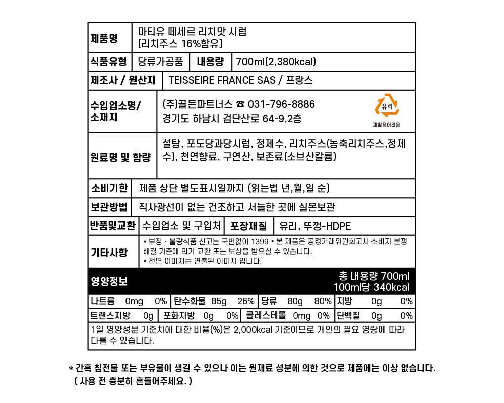 떼세르 리치 시럽 (700ML)