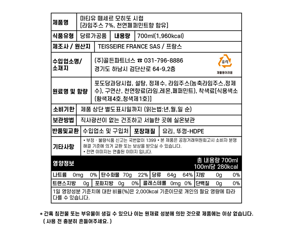 MATHIEU TEISSEIRE SYRUP(사업자전용)