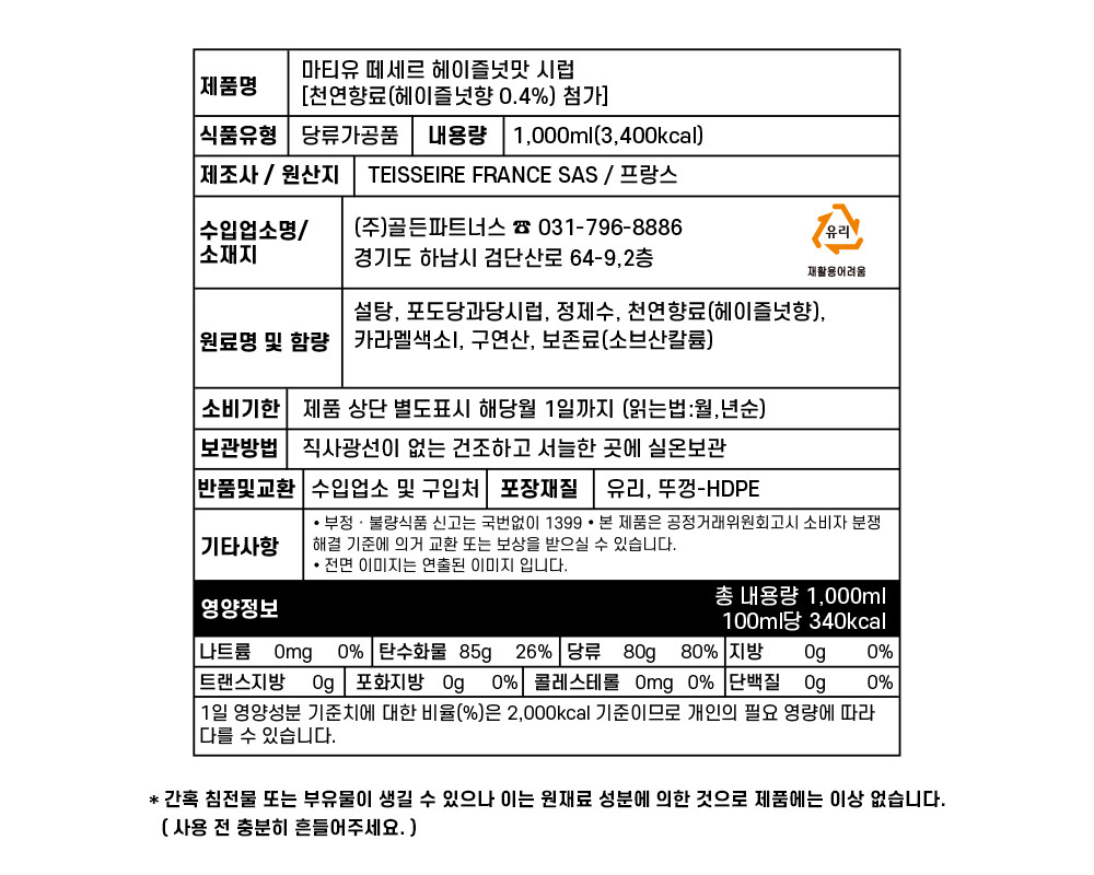MATHIEU TEISSEIRE SYRUP(사업자전용)